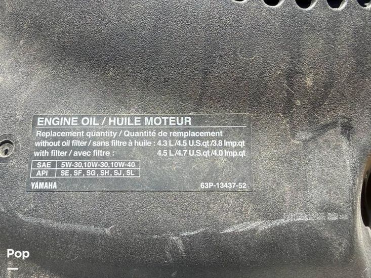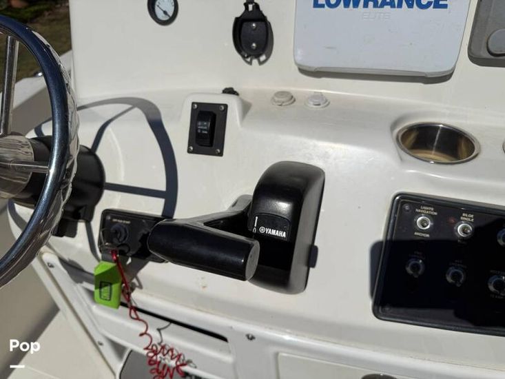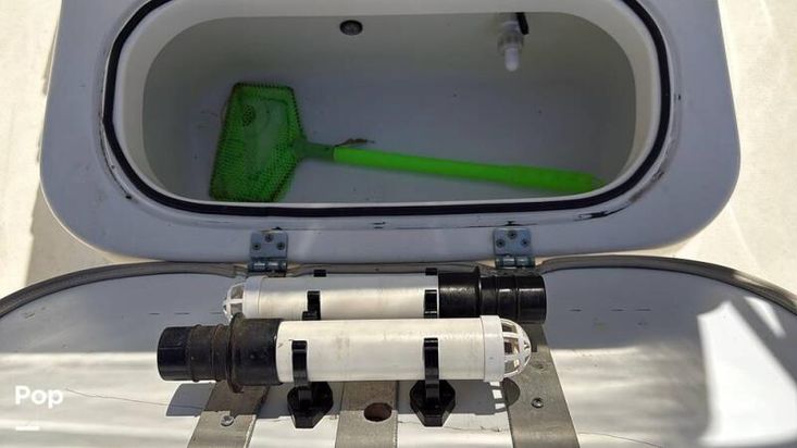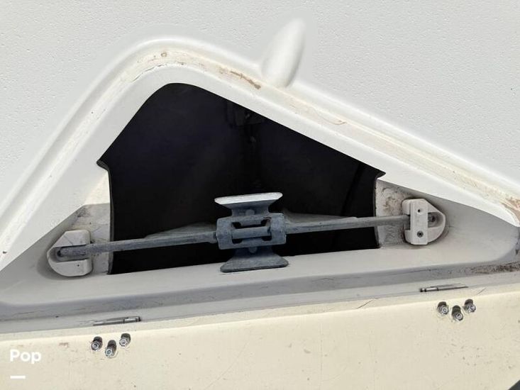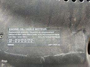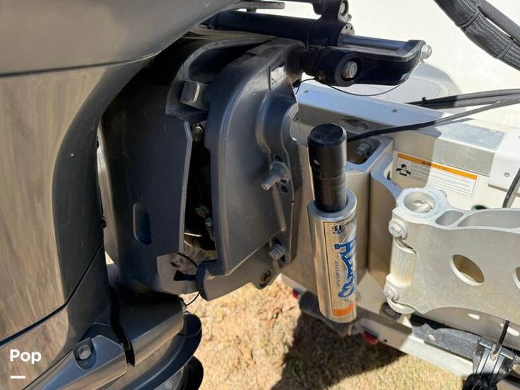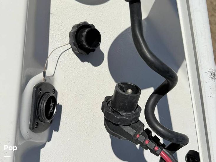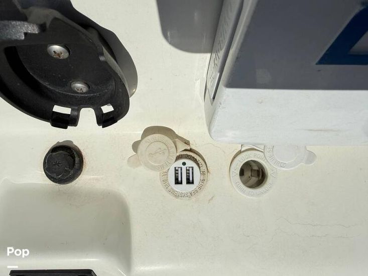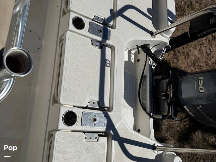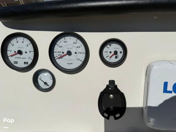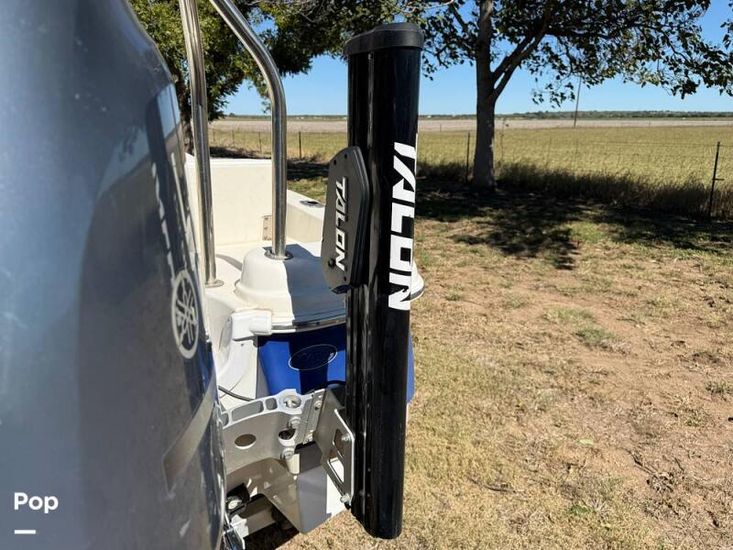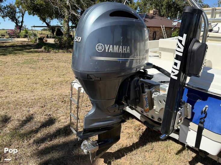 This boat is equipped with a Yamaha 150 HP 4-stroke motor with only 220 hours and a Minn Kota trolling motor with i-Pilot, perfect for anglers or those seeking precision control. The 8-foot Talon power pole adds to the ease of anchoring when finding the right spot.