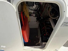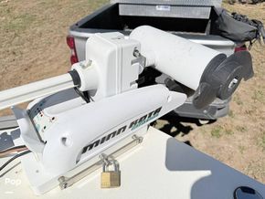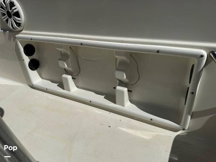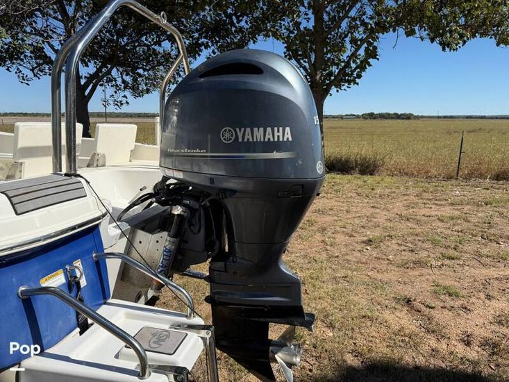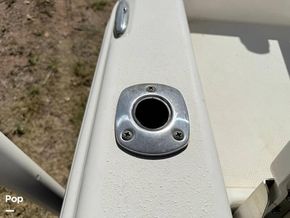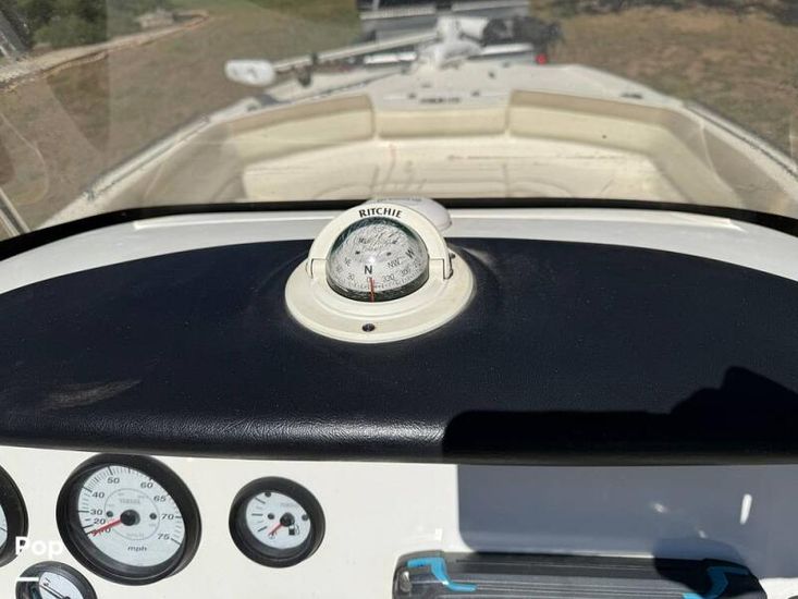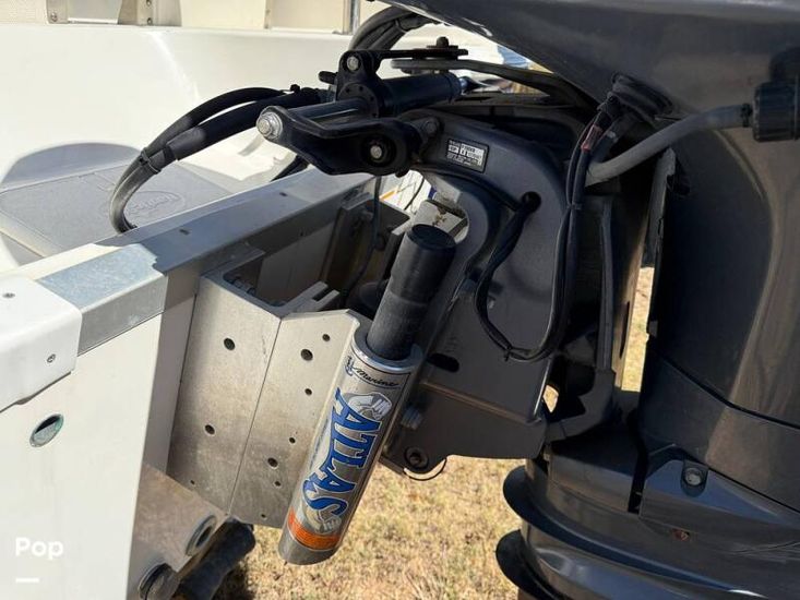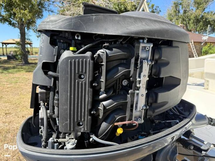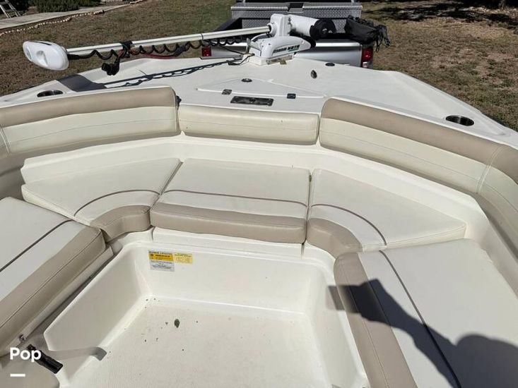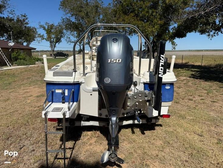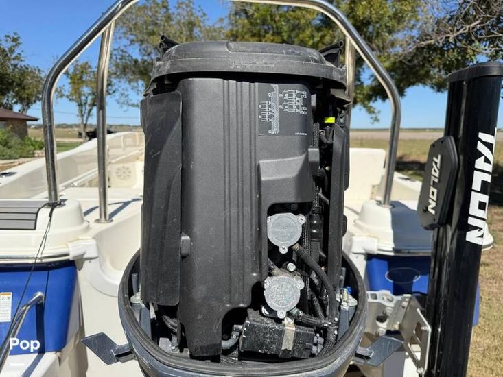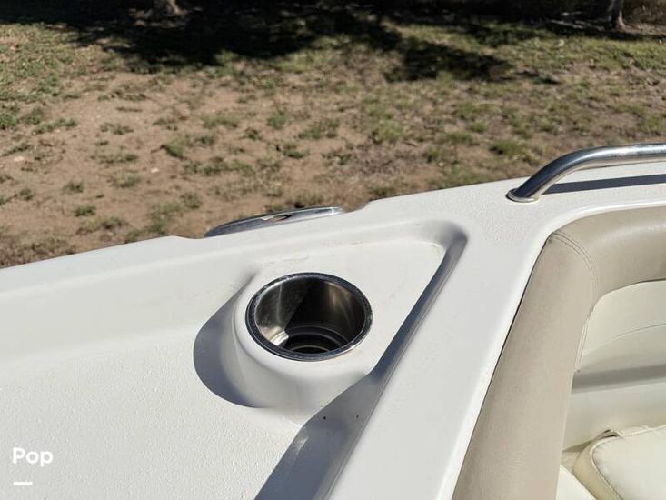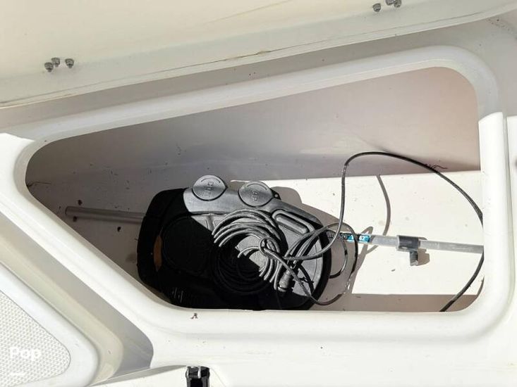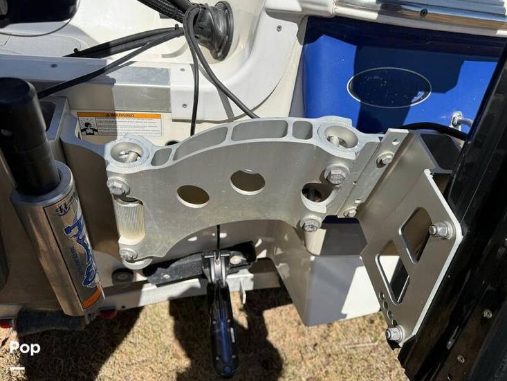 This boat is equipped with a Yamaha 150 HP 4-stroke motor with only 220 hours and a Minn Kota trolling motor with i-Pilot, perfect for anglers or those seeking precision control. The 8-foot Talon power pole adds to the ease of anchoring when finding the right spot.