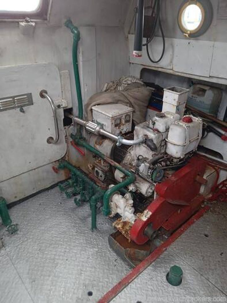 Electrical power is provided by the single cylinder Lister auxiliary which drives a 24/32 volt 47 amp generator and a fire/bilge pump.