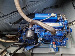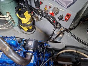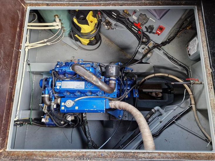 Under floor storage is very large and houses the engine. Outside the boat has 6 solar panels.