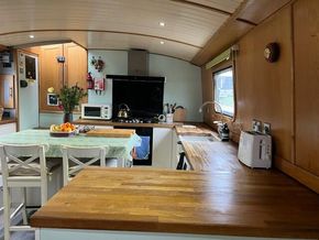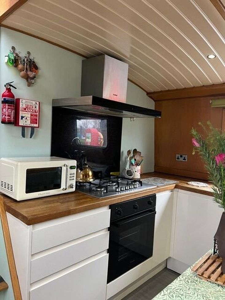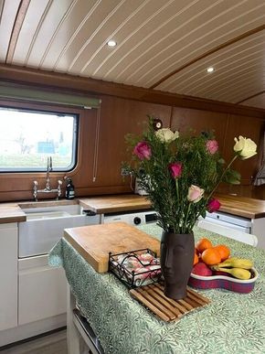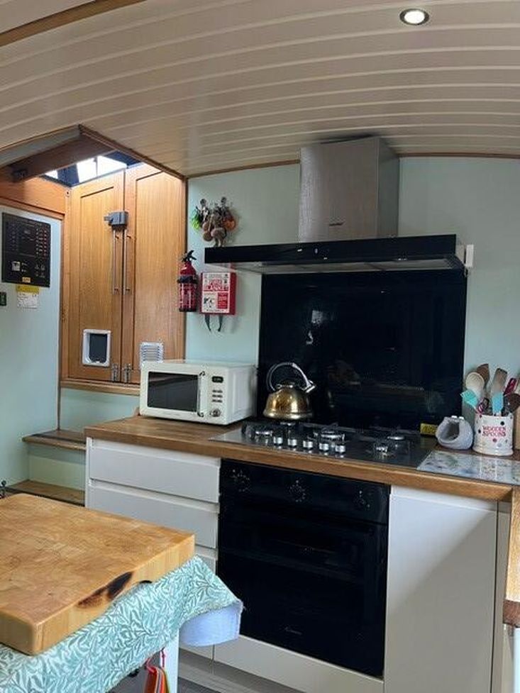 This boat has come to the market due to a move for the current owners, it is a great fit for anyone wanting a new pace of life or just downsizing. It has two bedrooms, a fully fitted bathroom with shower over the bath and an electric toilet, a huge amount of wardrobe and storage space, and a fully fitted kitchen with 5 burner hob, appliances included and a very nice original Belfast sink.