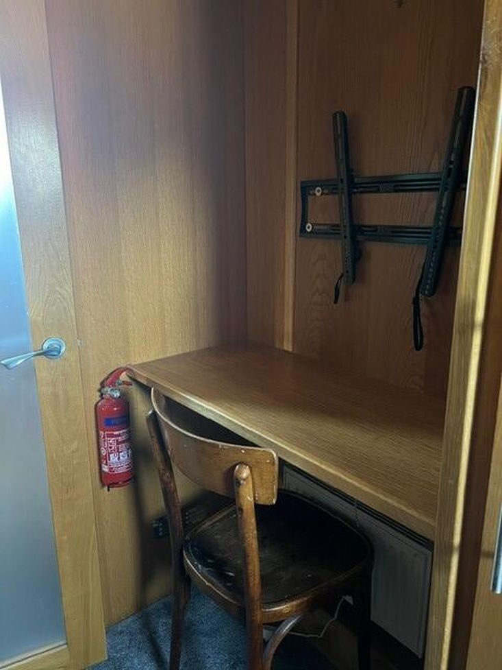 Bedroom 2: Great single room with Emma mattress (included), underbed draw for bedding and under bed storage either side of the draw, two large double wardrobes and a large floor to ceiling shelf unit with mirrored door, vanity desk, could be used as an office if needed, TV wall mount (included). Leading into walk through bathroom.