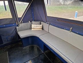 Back Deck: Large, curved seating area with new canopy hood (Harris Hoods fitted 2024), great configuration of panels for those summer evenings when sitting on the back deck with a G& T, two full sized zip doors for that through draft when it’s just that little bit too warm.