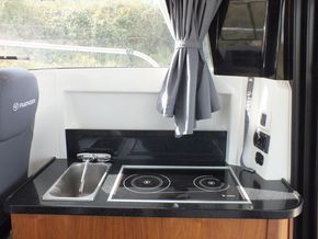 Galley with hob, sink, fridge & storage