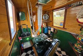 Blake is a wonderfully charming and cozy narrowboat! with a lovely blend of traditional features and practical living space. The Boatman’s cabin with the solid fuel stove provides a warm, inviting atmosphere, perfect for those chilly evenings. The Roses and Castles artwork is a classic touch that adds a lot of character to the interior.