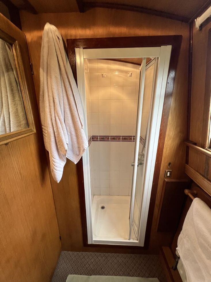 Fun fact: As the original Owner of the boat was very tall, he had the floor lowered when they built it so amble headroom!