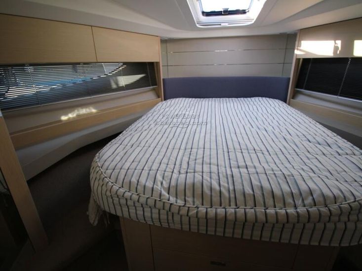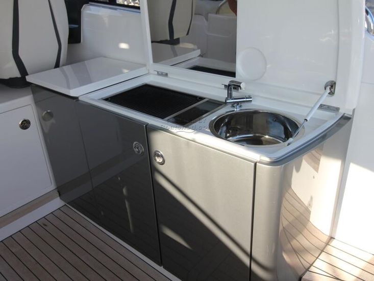 You are welcomed by a spacious cockpit with elegant seating area and a well-equipped wetbar. There is also an electric sunroof providing a large open space.