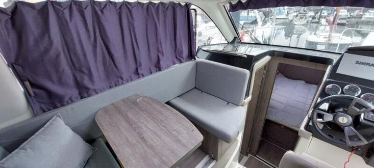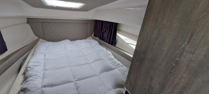 Whether you’re on the move or relaxing, the 905 Weekend is ready to go. The sliding cockpit bench seat can be converted to a large dining area or to a sun lounge. Can’t get enough of the sun? There is a second sun lounge on foredeck. Optional air conditioning and heating is available to maintain the desired temperature. And the boat’s large galley with stove and optional microwave and fridge will help you prepare the perfect dinner out on the water.