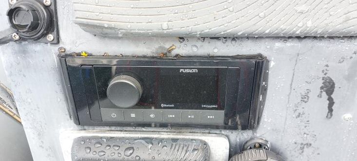 Centre consol with helm , electronics, front seat, storage, stainless steel grab rail and engine remotes and gauges