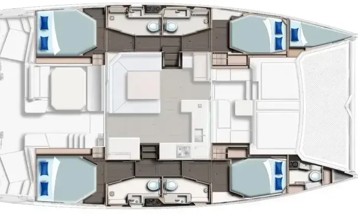 - GUEST: 4 x staterooms in port and starboard hull with en suite head in each