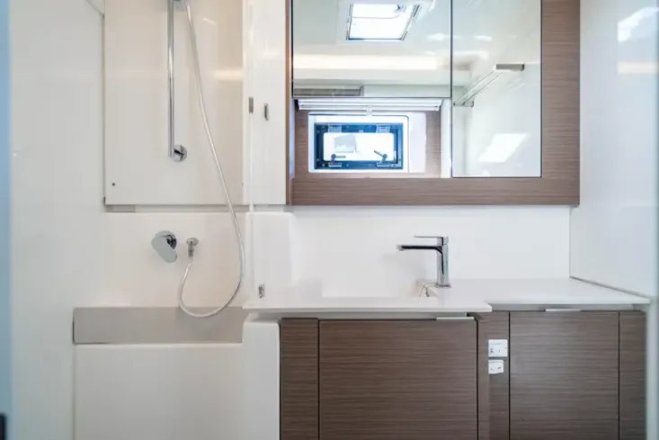 While retaining the core elements that made the Leopard 45 so popular, the Leopard 46 introduces numerous innovations to enhance comfort, convenience, and sustainability. The layout has been refined to provide a seamless integration between the aft cockpit and saloon, allowing for flexible living spaces. The elimination of the skipper cabin has made way for more spacious accommodations, including a choice of three cabins plus a utility room, a four cabin layout, or five double cabins, all with ensuite head/showers.