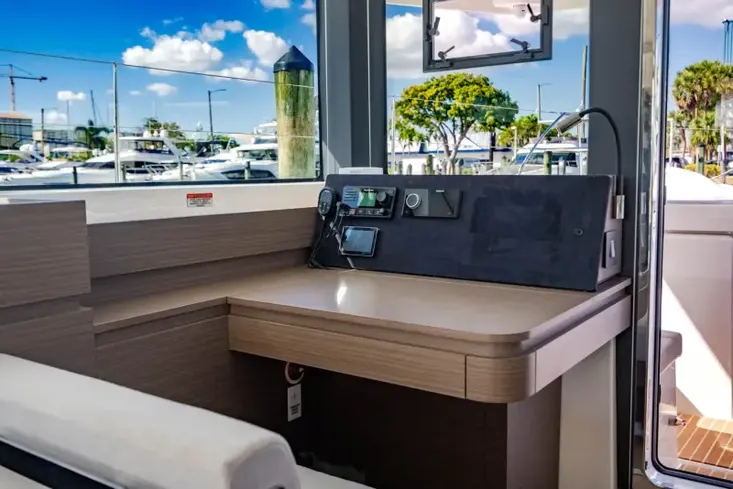 The stepped hulls and powerful rig with overlapping genoa provide superior handling in all wind conditions. The protected helm station is designed for offshore single-handed sailing, making it ideal for long-distance voyages.