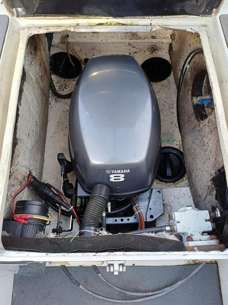 Yamaha 8hp high thrust electric start outboard mounted inboard, with full remote controls and fresh water flush - flushed after each use.