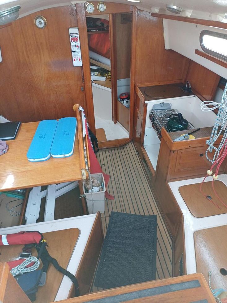 Saloon, forepeak and quarter berth cushions – removed for winter.