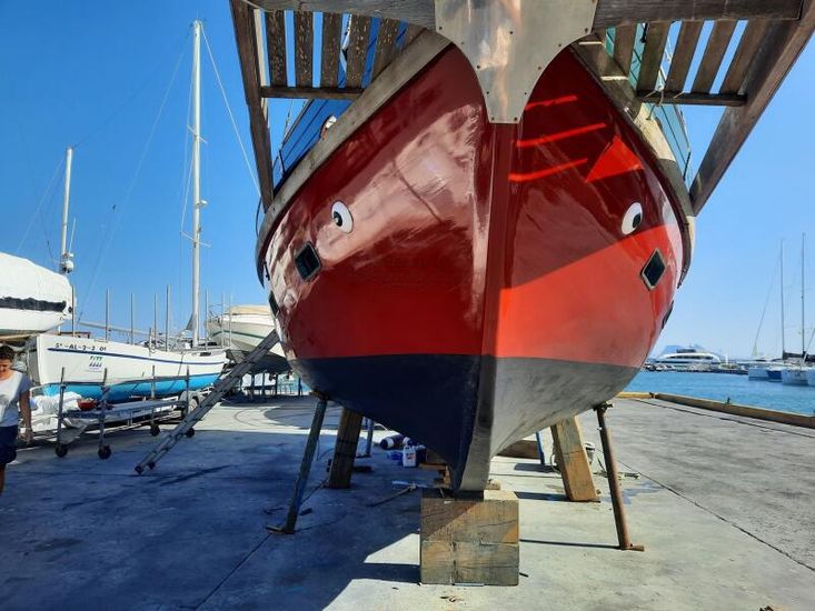 She has recently (June 2023) been out of the water for maintenance. There was no sign of any wood rot on the underside. She has been primed and painted throughout and now looking great.