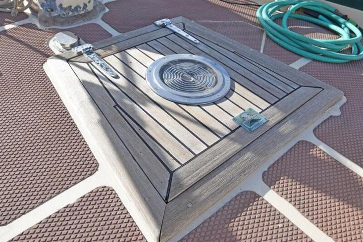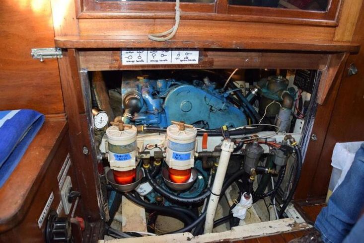 Located under the cockpit, is the Perkins Prima M60 four-cylinder 59hp diesel engine, c1995 but installed new in 2002. Approximately 4600 hours running time since new. Electric start. Freshwater cooled via heat exchanger. Shaft drive to three bladed propeller. Single lever control. 420 litre fuel capacity in two tanks. Cruising speed under power 5 knots, maximum 7 knots. The engine has been regularly serviced.