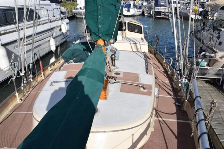 Built in 1958 by Kok Scheepswerf in Vinkeveen, Holland to a design by Henk Tingen. Round bilge welded steel hull with steel deck and coachroof. After purchase in 1987 the boat was given a complete keel-up rebuild and refurbishment by the present owners. This included some re-plating, shotblasting and re-painting, a new engine, new sails, re-rigging, re-wiring and re-plumbing and the boat has been maintained to a high standard ever since. The hull is fully insulated. Long keel with cast iron ballast and lifting centreplate. Keel hung rudder. Wheel steering. Aft self-draining cockpit. Treadmaster non-slip to deck with teak cockpit seating. Last surveyed in 2021 with a copy available upon request.