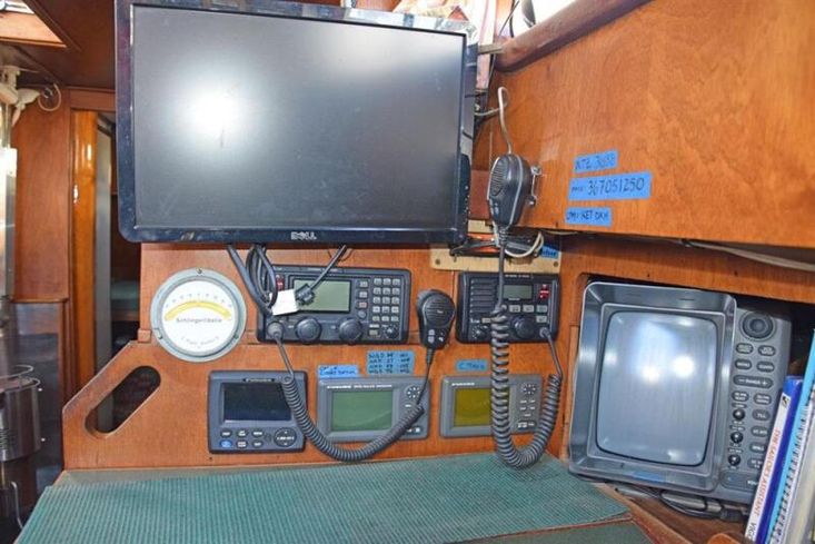 - ICOM M802 SSB radio with ICOM tuner, MJF-949E SWR meter and Pactor modem