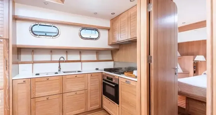 The 55 flybridge is capable of serious offshore cruising. The fuel tank capacity of 2,800 litres allows the 55 to cruise without refuelling for several days (up to 1,000 NM). This Category A motor yacht combines tradition with class beating hull design in a true offshore passage maker.