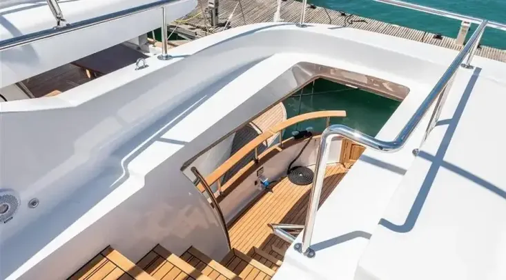 - Stainless steel handrails on bow solarium and stern column