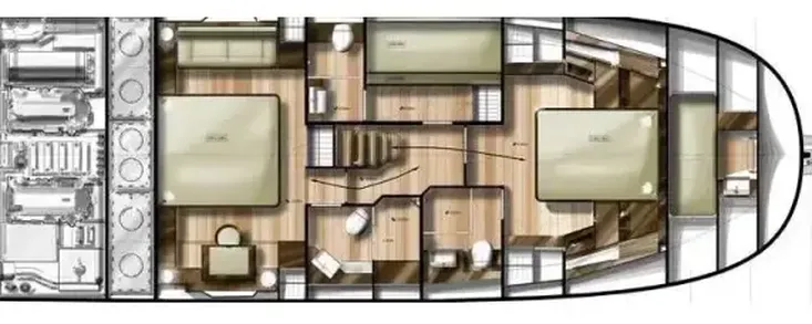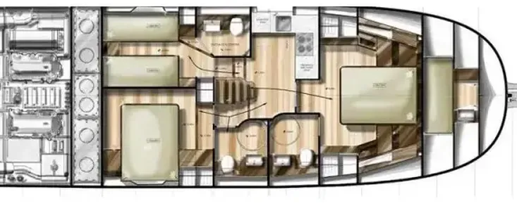 - 6 berths in 3 cabins