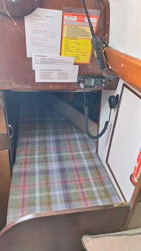 The engine control panel and rev. counter are easily accessible within the cockpit locker and the morse control is easily to hand. Self draining anchor well housing the anchor and chain. There are twin Lewmar 40 and 16 winches for genoa and spinnaker sails respectively and the genoa cars are controllable at the cockpit. The genoa and mainsail are hoisted by mast mounted winches.