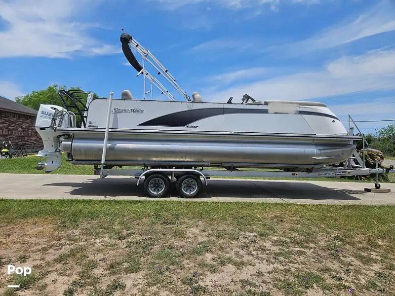 This 2022 Silver Wave 2410 SW3 RLP has the Bluetooth sound system and is a 5-speaker premium "Wet Sounds" system with color changing LED lights. It has a rear 8ft Bimini with a changing room. The boat is equipped with a rear center table for your dining needs. The Ski tower includes a wakeboard/kneeboard combo mount. The Prop is stainless steel, and the boat has dual batteries with the battery transfer switch and fuel separator. It has a fitted boat cover with easy snap ons. Will include safety pillow, safety paddle, flare gun, and exterior bumpers for docking. The boat is factory equipped with a safety horn as required by all water safety and is also equipped with upper rail quick mount bumper snaps. This Vessel is ready for its new owner and is ready to hit the waters again.