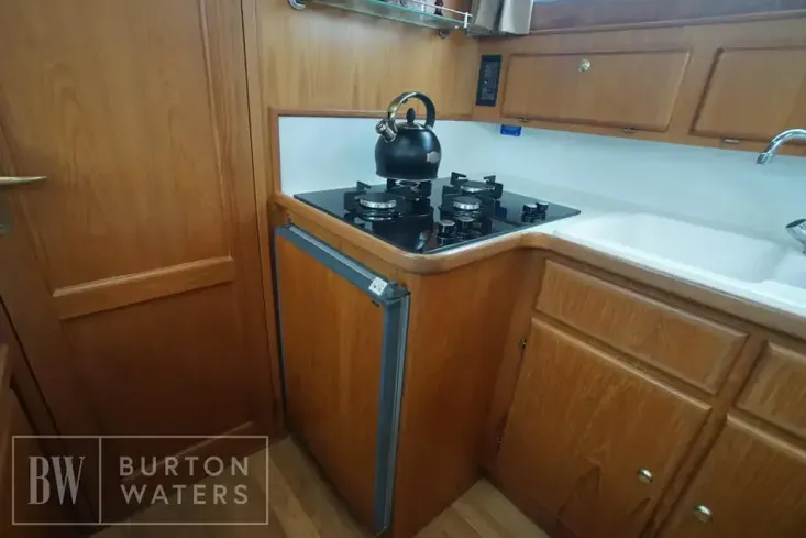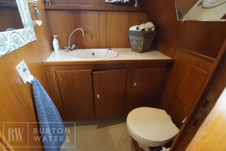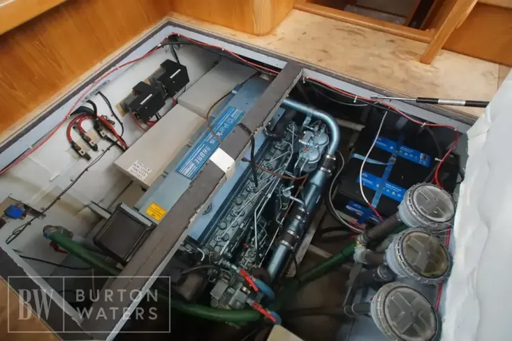 The vessel has seven berths with a aft master cabin with a double island bed. The layout also offers a forward cabin, Dinette area, galley, and large saloon area.