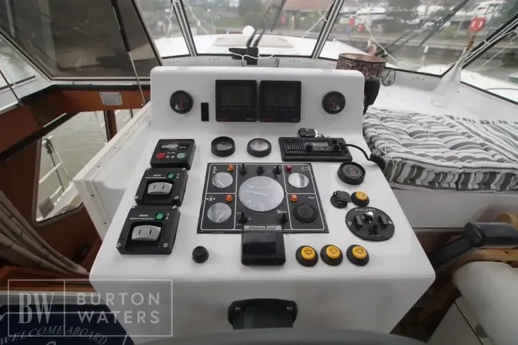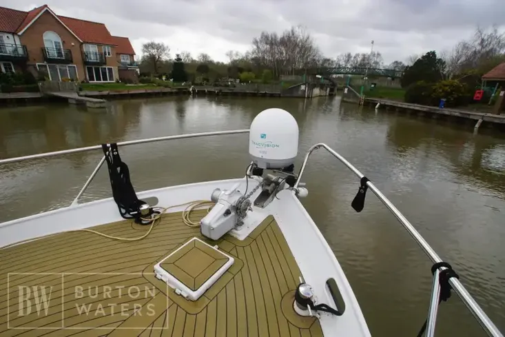 The vessel is fitted with bow & stern thruster, generator, Heating in the vessel and also the cockpit area, Hinged arch and folding screens, Separate shower and head and Satellite TV’s in saloon, Cockpit and mater cabin.
