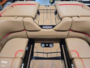 The fuel capacity is 55 gallons, allowing for extended time on the water. Key to its watersports performance is the 3,500 lbs sub-floor ballast system, which works in conjunction with the competition hull, Swell Surf 3.0 system, and AutoWake technology to produce crisp wakeboard wakes and competition-level surf waves. The approximate draft is 28".