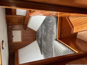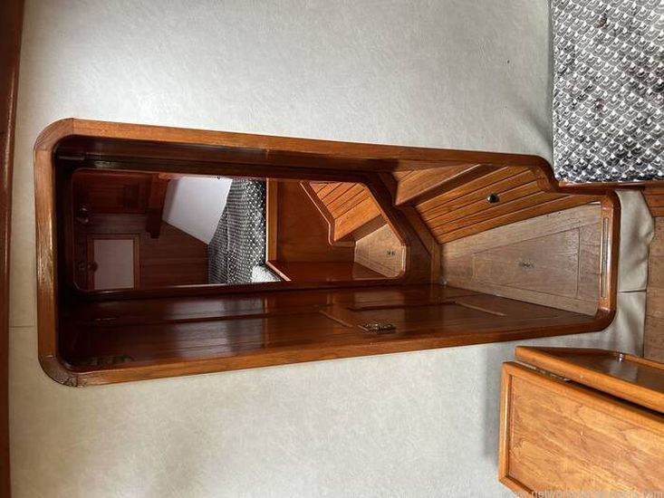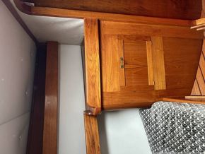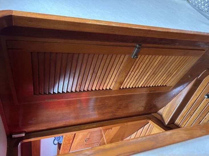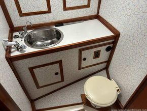 The accommodation below is designed for comfort afloat and practicality when under way. Utilising the skills of experienced craftsmen, they are built to uncompromising standards. The teak trim and attention to detail are evident throughout. The layout provides a spacious saloon boasting over six-foot headroom, a galley with large work areas and a chart table ideally positioned for the navigator's comfort. Further forward the roomy, well-appointed shower/ head compartment complements the Owner's cabin and adjacent locker area