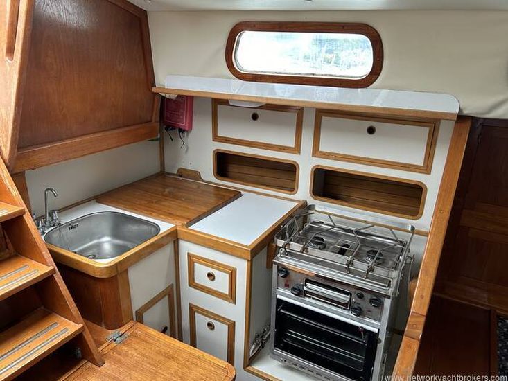L- shaped galley to port aft of the saloon