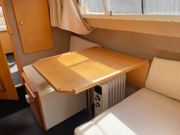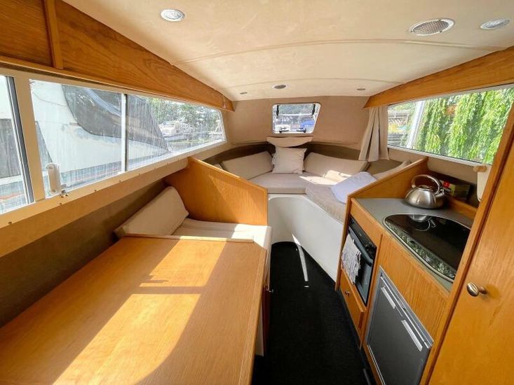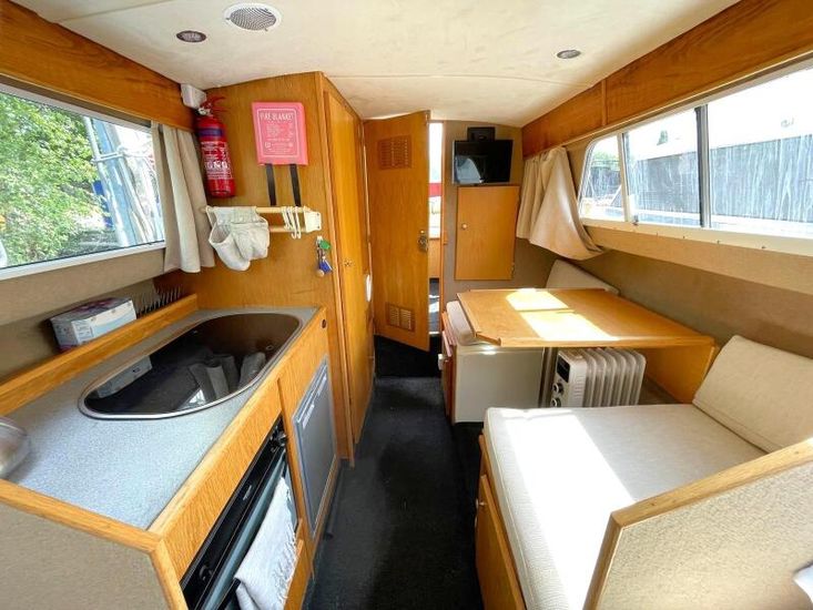 Elvira is well equipped and an ideal boat for exploring our beautiful inland waterway system this summer. The main features on Elvira a Truma hot water heater, shower room with drop down wash basin, television, fridge, compact oven with grill and a fish finder / GPS navigation system.