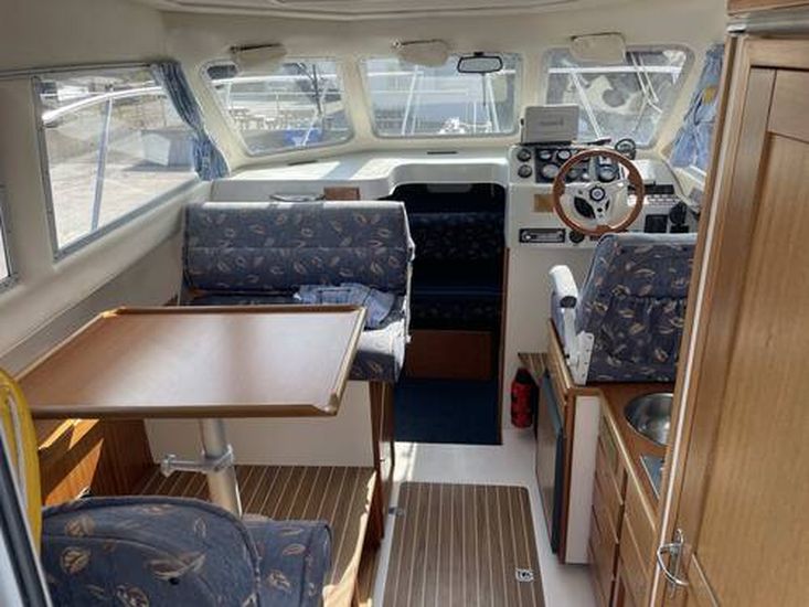 This 2002 Viksund 260 St. Cruz has been very well looked after and comes with a well maintained shaft driven 150hp Volvo diesel engine with about 700 engine hours. Her inventory includes, bow thruster, 2023 stern thruster, four berths, Garmin 751 GPS/plotter, Garmin Sonar Striker Plus 7, B&G V20 DSC VHF, removable davits, 2023 electric windlass, heating, shore power, cockpit tent, transom mounted auxiliary outboard bracket and more. She really is excellent value and viewing is recommended.