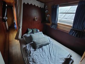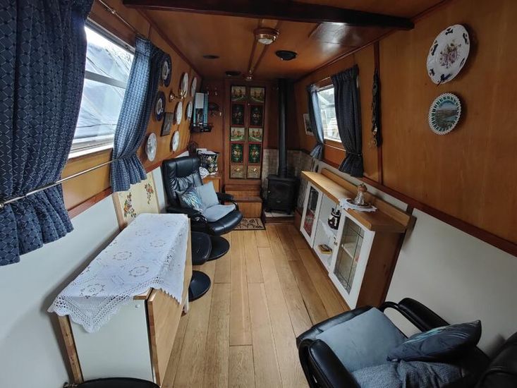 Rare Midlands and Coast fully converted narrow boat built by Yarwoods of Northwich. She started life as a horse drawn boat operating from Wolverhampton. She was gauged in February 1926 at Factory Three. Full history known and documented. Registered with National Historic Ships 2729. She was shortened and motorised by Harris Bros at Netherton in 1937 as a tug for Hingleys Limited (Halesowen) and renamed Crown. Bought by Malcolm Braine in 1958 and a new steel cabin and back cabin fitted and renamed Lion. Sold as a leisure boat. She was lengthened to 70ft in 1974 at Braunston with a steel base plate. Back cabin and interior doors painted by Jess Owen of Charity Dock in 1970s. Purchased by the current owner in August 2010 from John and Phyllis Saxon. New back cabin range and flue pipe fitted in 2010. Full repaint carried out in 2021 by Norbury Wharf in original 1925 livery. Other interior painting by Mavis Waldron. Interior renovation of the galley and bathroom was carried out at Stretton in 2022. Oak flooring in main cabin and new thermal curtains fitted in 2022. Survey available from February 2024. Complete new stern gear fitted in April 2025 including new propeller. Layout from the rear comprises of fully fitted and traditionally decorated back cabin, engine room with Lister HR2 (fitted 2012), double bedroom with wardrobe over foot of bed, bathroom with vanity basin, Thetford 565 toilet and hip bath and shower over. Second double bedroom with ample storage, fully fitted galley with fridge (new 2024), full sized gas cooker (new 2024), stainless sink/drainer. At the front of the cabin is the spacious saloon with Bubble diesel stove. The North has been used as a liveaboard during all seasons. Genuine reason for sale – owner moving overseas. Mooring available locally on Shropshire Union Canal to be negotiated separately if required.